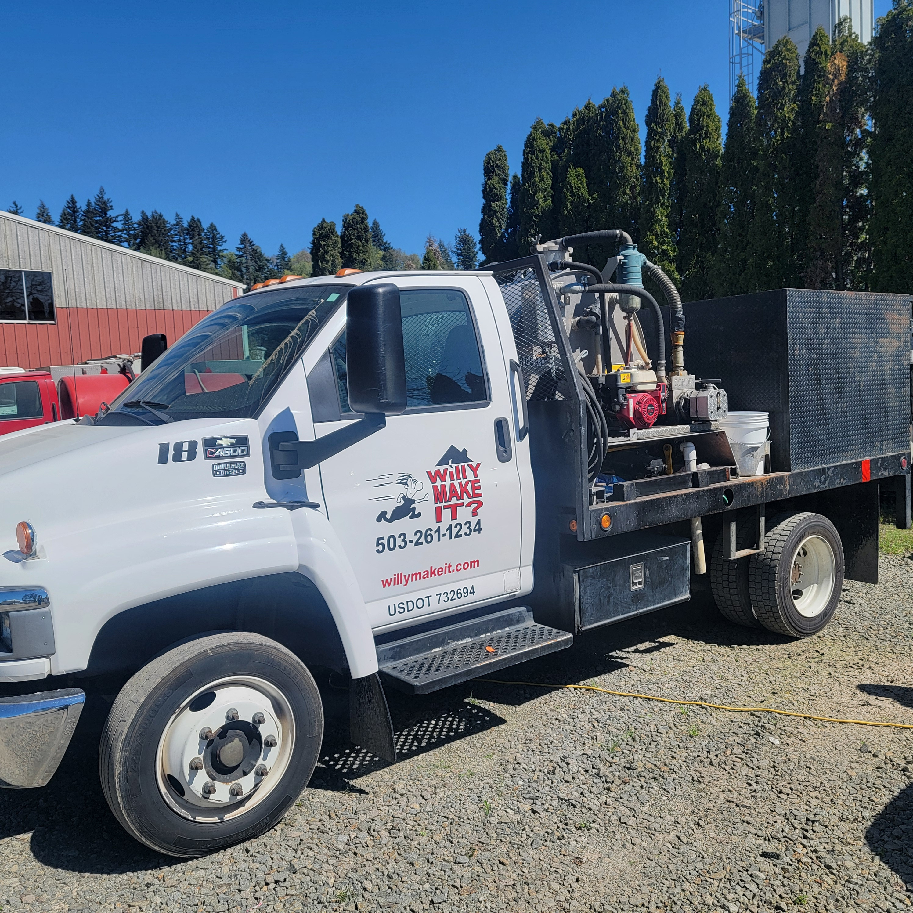 2004 Chevy 4500. 157,000 miles, drives great. Tank is 300 waste/100 fresh, Honda out board runs a Conde vacuum pump. Truck holds 3 units and has hydraulic lift gate. Tows good. We will be using truck until sold, only selling because we need a bigger capacity truck. $23,000 OBO, for more photos or question email Marcus at marcus@willymakeit.com. (P06)