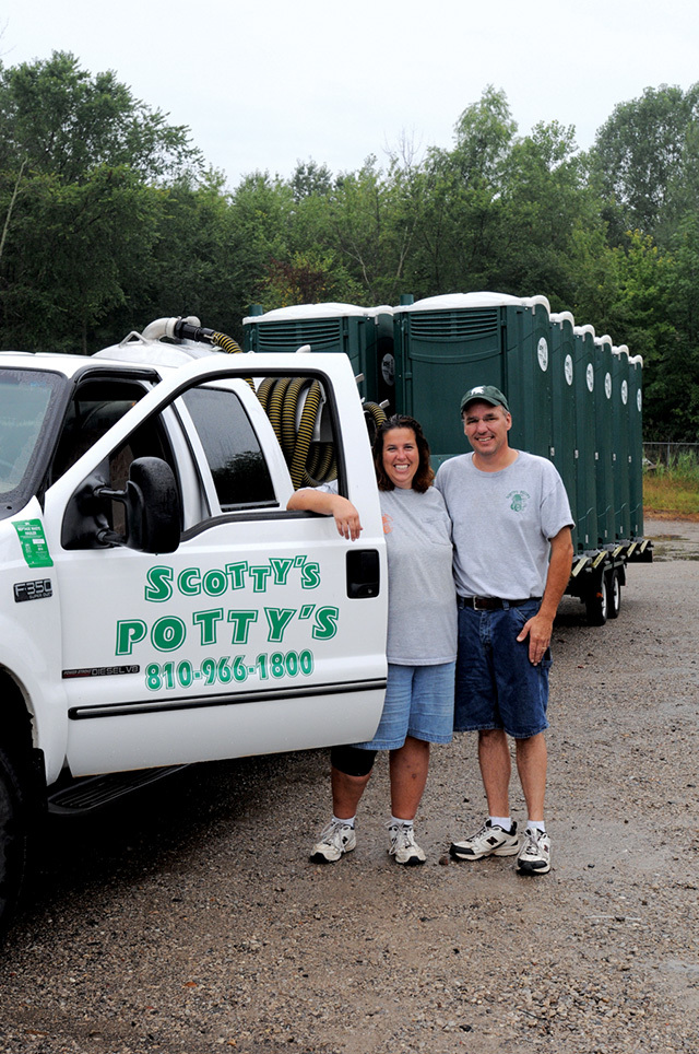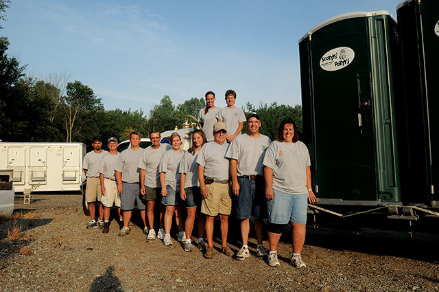 For their biggest event weekend of the year, Brian and Molly Fagan, owners of Scotty’s Potty’s in Port Huron, Mich., depend on family, friends, and occasional part-time help. The team returning in 2011 to cover three big event venues over one week included Brian’s sister, Judy Allen; his father, Don Fagan; his daughters Sara and Lindsey, and his cousin Pete Paulus. On Molly’s side of the family, helping were nephew Max Roeske, uncle Dick Engelgau and friends John Downing, Dena Garcia, David Garcia, Tom Hickman, Matt Allen and Brent Woolman. Working July 18-26, many in the crew have helped the Fagans for seven or eight years.