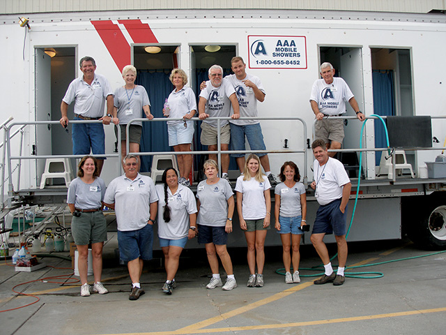 No one wishes for forest fires or other natural disasters. But when they occur in the Western United States, AAA Mobile Showers must stand ready to mobilize at a moment’s notice to provide hundreds – sometimes thousands – of emergency workers with mission-critical shower and laundry trailers and other base camp necessities, such as water trucks, generators and tents.