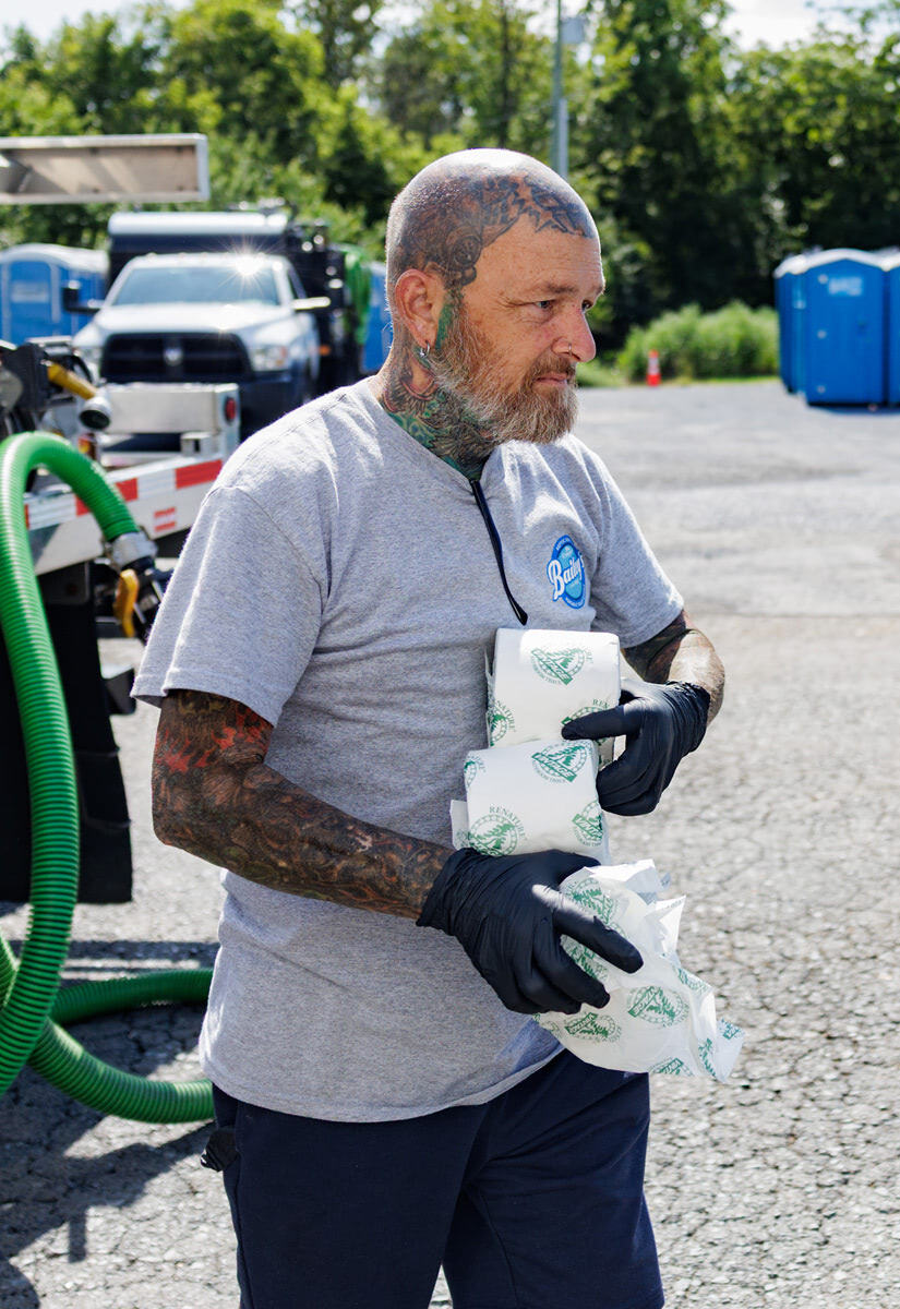 Todd, their son, came onboard in the 1990s. One of his important contributions to the business was bringing in portable restrooms. “It was for expansion and to bring me on as the next generation,” he explains. The new service line was successful and today accounts for half the company’s revenue. In 2010 Todd became the official owner.