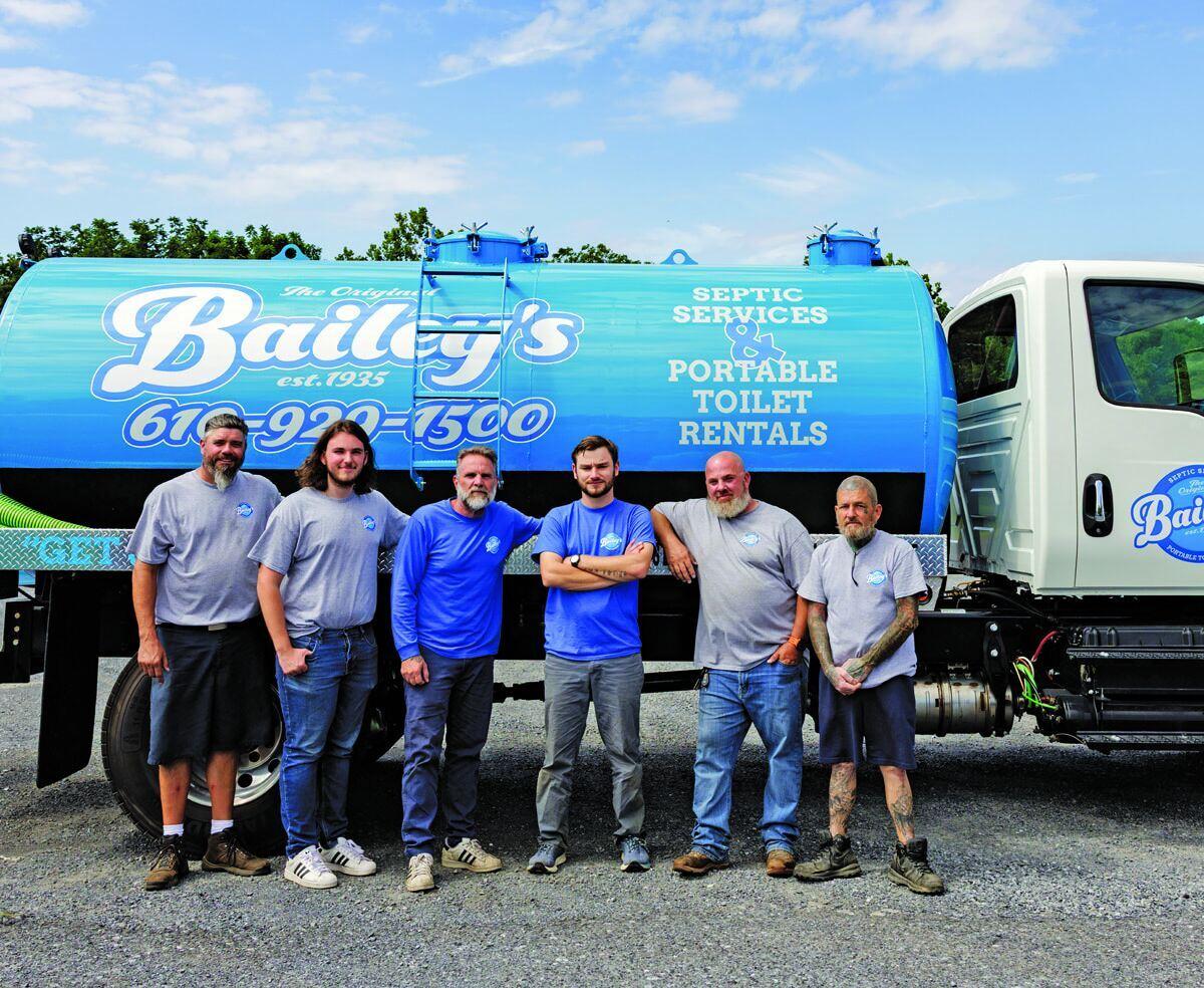 Bailey’s Septic Service & Portable Toilet Rentals operates out of a 5-acre property. They have a staff of 13 and work within a 50-mile radius providing septic pumping and portable restroom rentals.