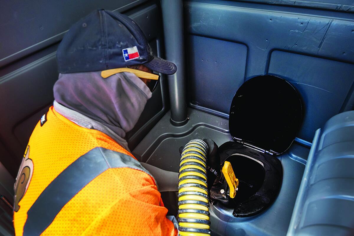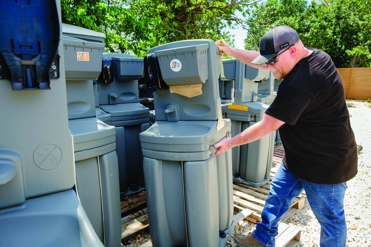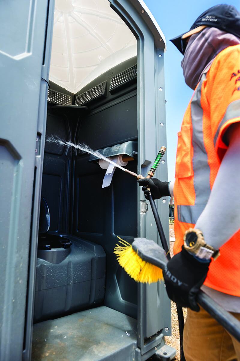 In 2023, the company finally expanded into portable restrooms, purchasing about 150 units. The company currently has roughly 650 Satellite Global II portable restrooms, 45 Satellite Freedom 4 ADA portable restrooms and 125 J&J Echo standard portable restrooms. The company also owns four Ford F-550 trucks that host an Imperial 1,300-gallon aluminum tank with 400 gallons of freshwater and 900 gallons of wastewater with a Masport HXL4V pump. The company also has a Wabash 300-gallon slide-in unit and a second one on order, three 14-foot, four-stall Satellite portable restroom trailers and 110 Satellite Tag 4 sinks.