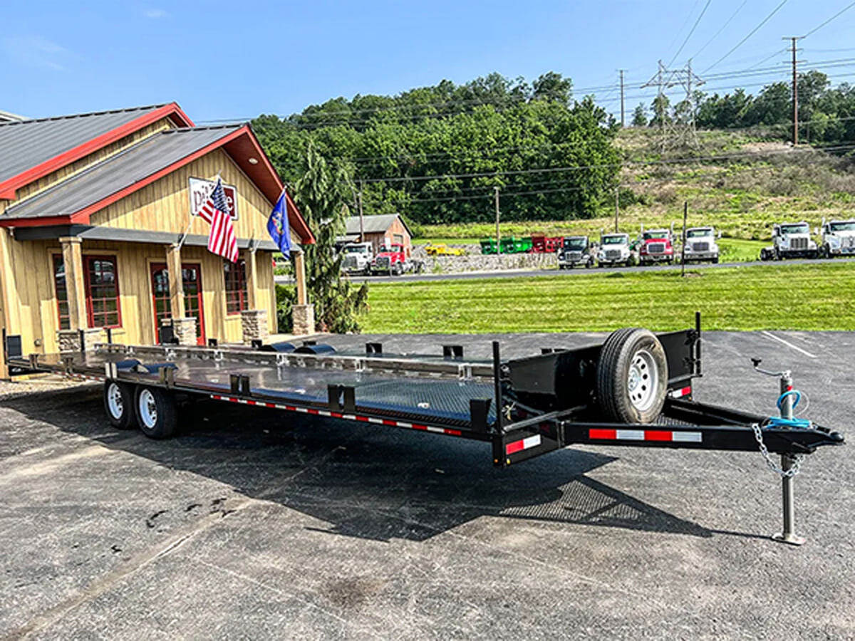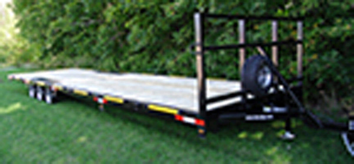 The 30-foot flatbed trailer from F.M. Manufacturing has three 3,700-pound torsion bar axles, side roller for easy loading, low-profile tires, solid front header and tie-downs on both sides. The customizable trailer has electric brakes on all axles and LED lights. 877-889-2246; www.fmmfg.com