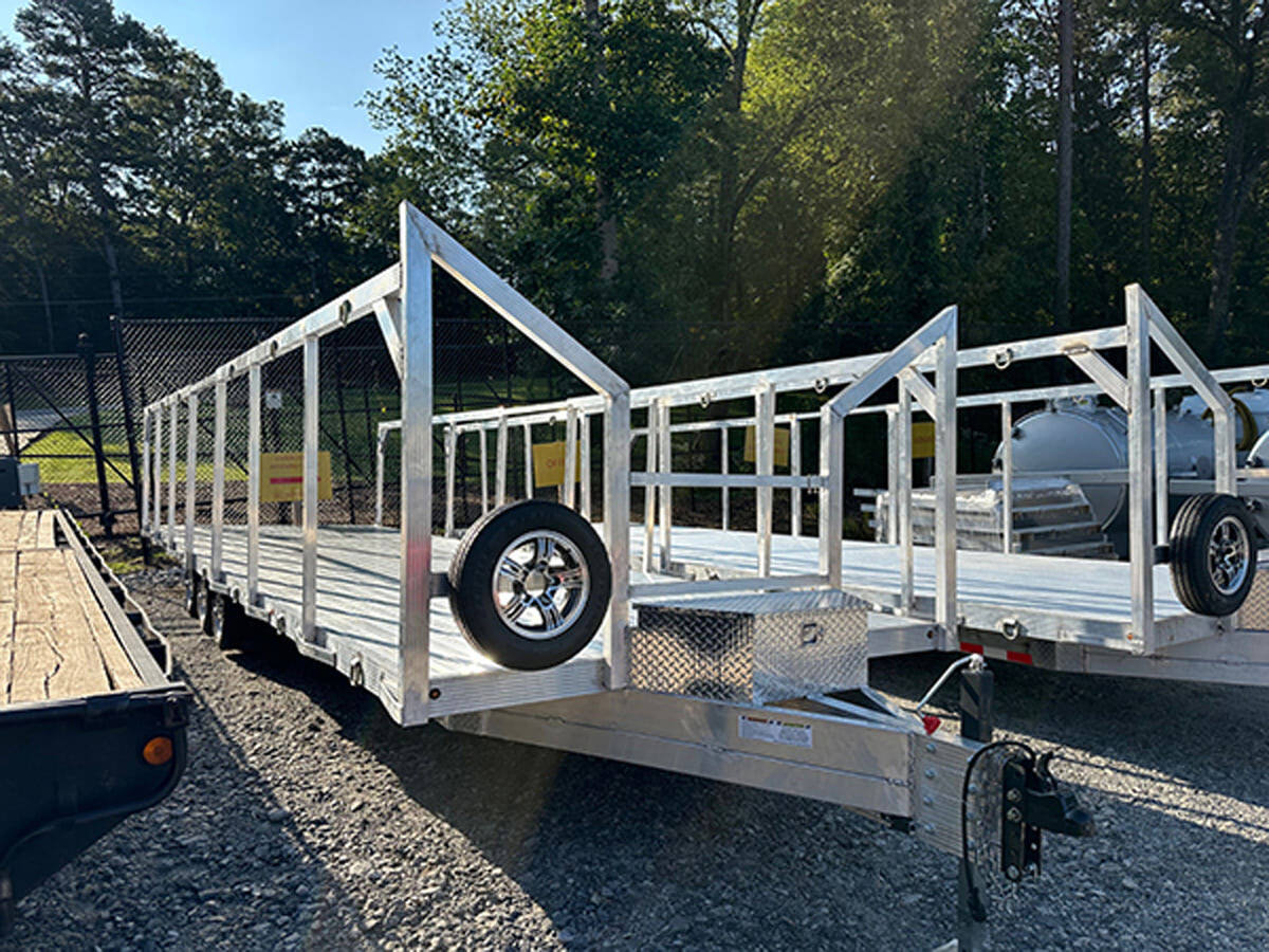Custom-built portable restroom delivery trailers from Liquid Waste Industries carry six to 24 units and come with or without sides. They are built with heavy-duty steel and come standard with torsion axles, electric brakes, flush-mounted lights and 10- or 13-inch wheels and tires. Custom upgrades include gates, leaf-spring axles, fold-down ramps, LED lights and choice of hitch. 877-445-5511; www.lwiinc.com