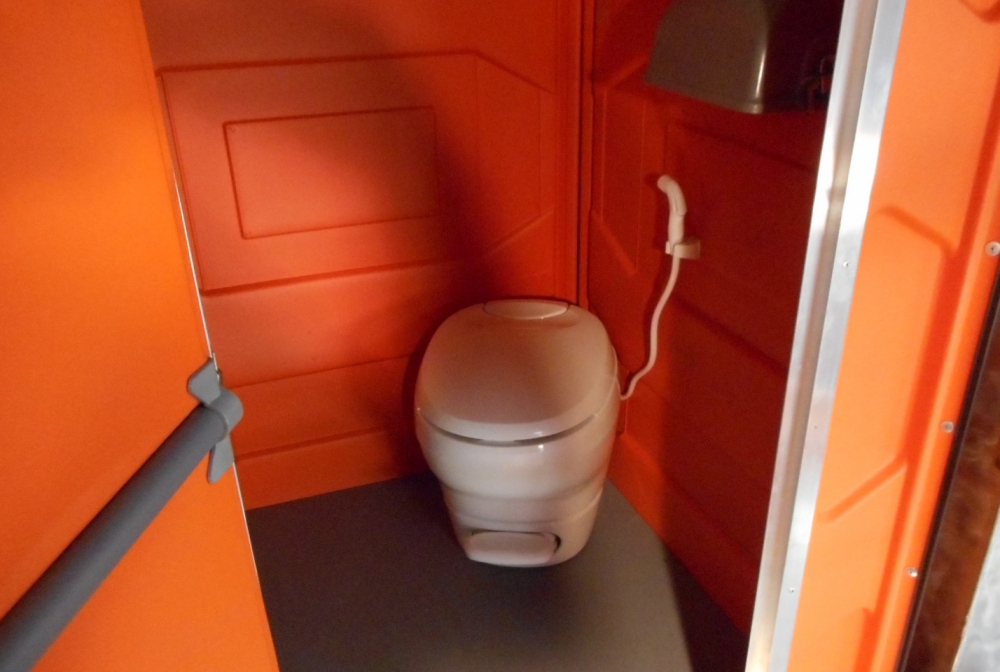 Also standard is the solar system which operates the pumps for flushing and the interior and exterior LED lights. A tool or storage box and simple fold-down steps with stabilizer jacks make this trailer an essential affordable alternative to high-end trailers. You can also dress it up for special events.